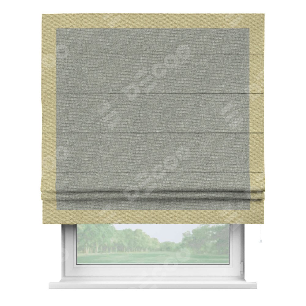 Римская штора «Кортин» для проема, лён димаут серый с кантом Чесс