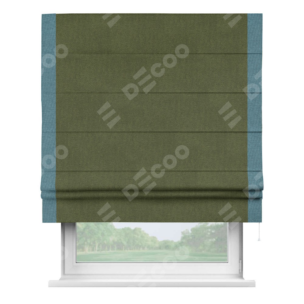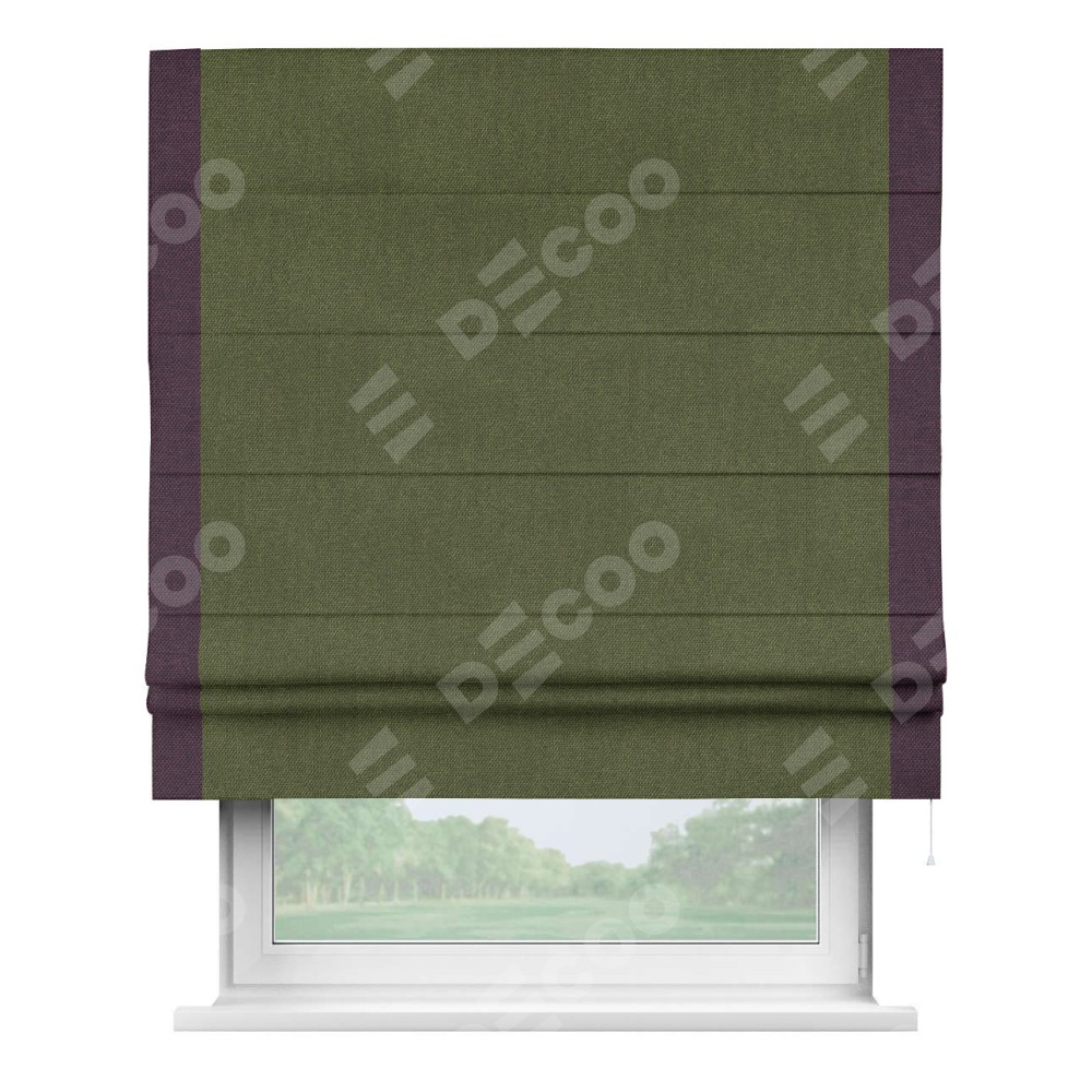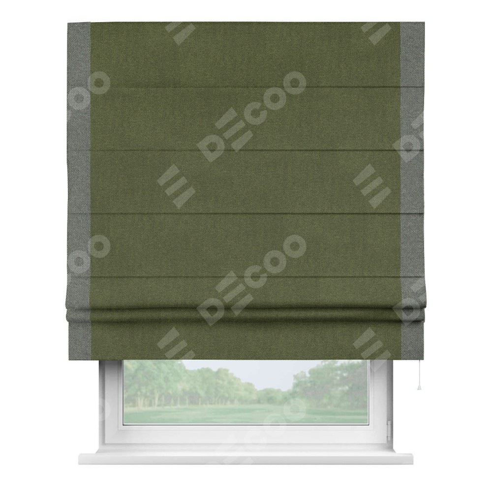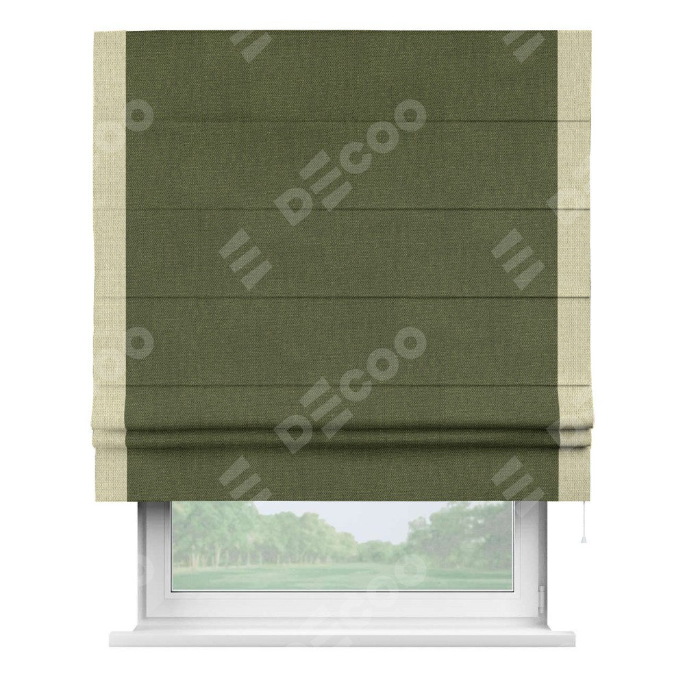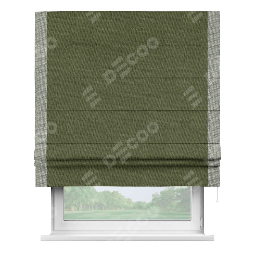 Римская штора «Кортин» для проема, лён димаут салатовый с кантом Стрим Дуо