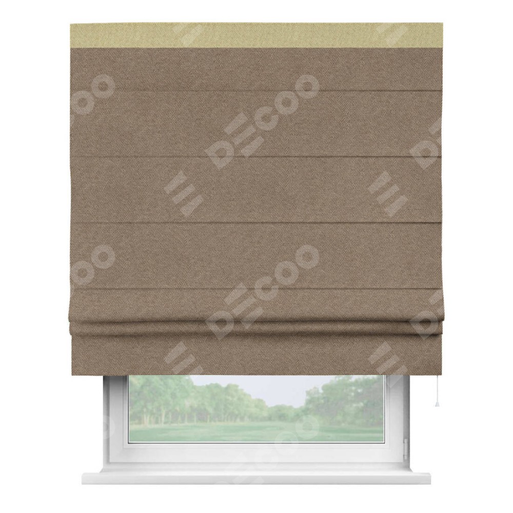 Римская штора «Кортин» для проема, лён димаут коричневый с кантом Кинг