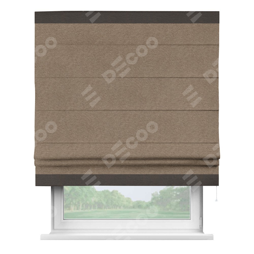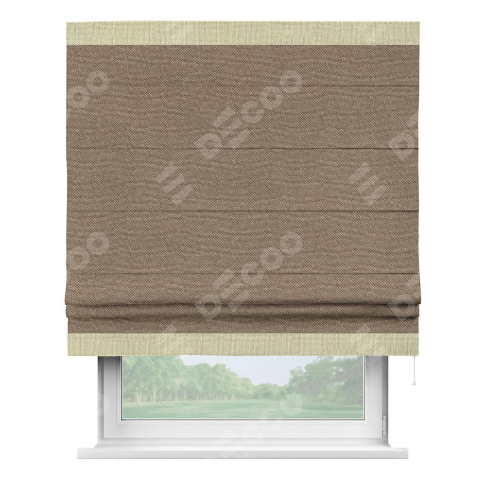 Римская штора «Кортин» для проема, лён димаут коричневый с кантом Горизонт