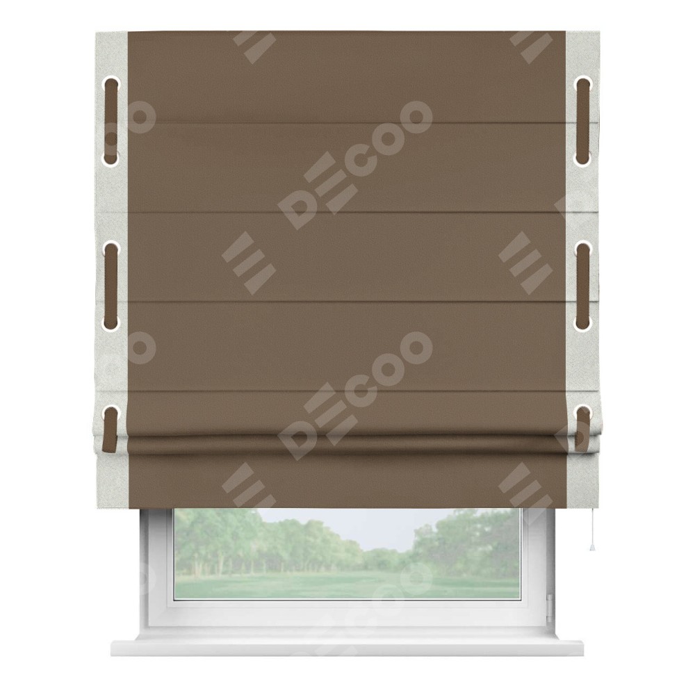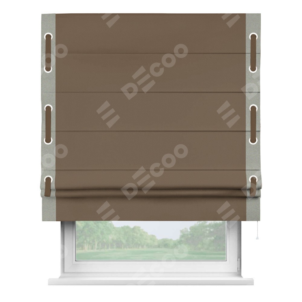 Римская штора «Кортин» для проема, блэкаут однотонный коричневый с кантом Стрим Дуо (люверсы с пояском)