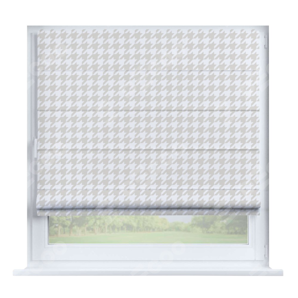 Римская штора производителя «Cortin», устанавливается на створку окна, пошита из ткани блэкаут с нанесением сублимационной печати «Гусиные лапки» молочный». Штора шьётся по индивидуальным размерам, для данного типа римской шторы возможная ширина от 35 до 150 см., высота до 250 см.