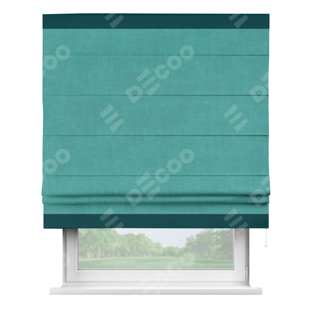 Римская штора «Кортин» для проема, канвас бирюзовый, с кантом Горизонт