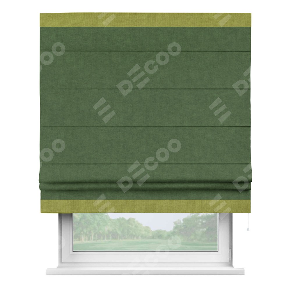 Римская штора «Кортин» для проема, канвас зелёный, с кантом Горизонт