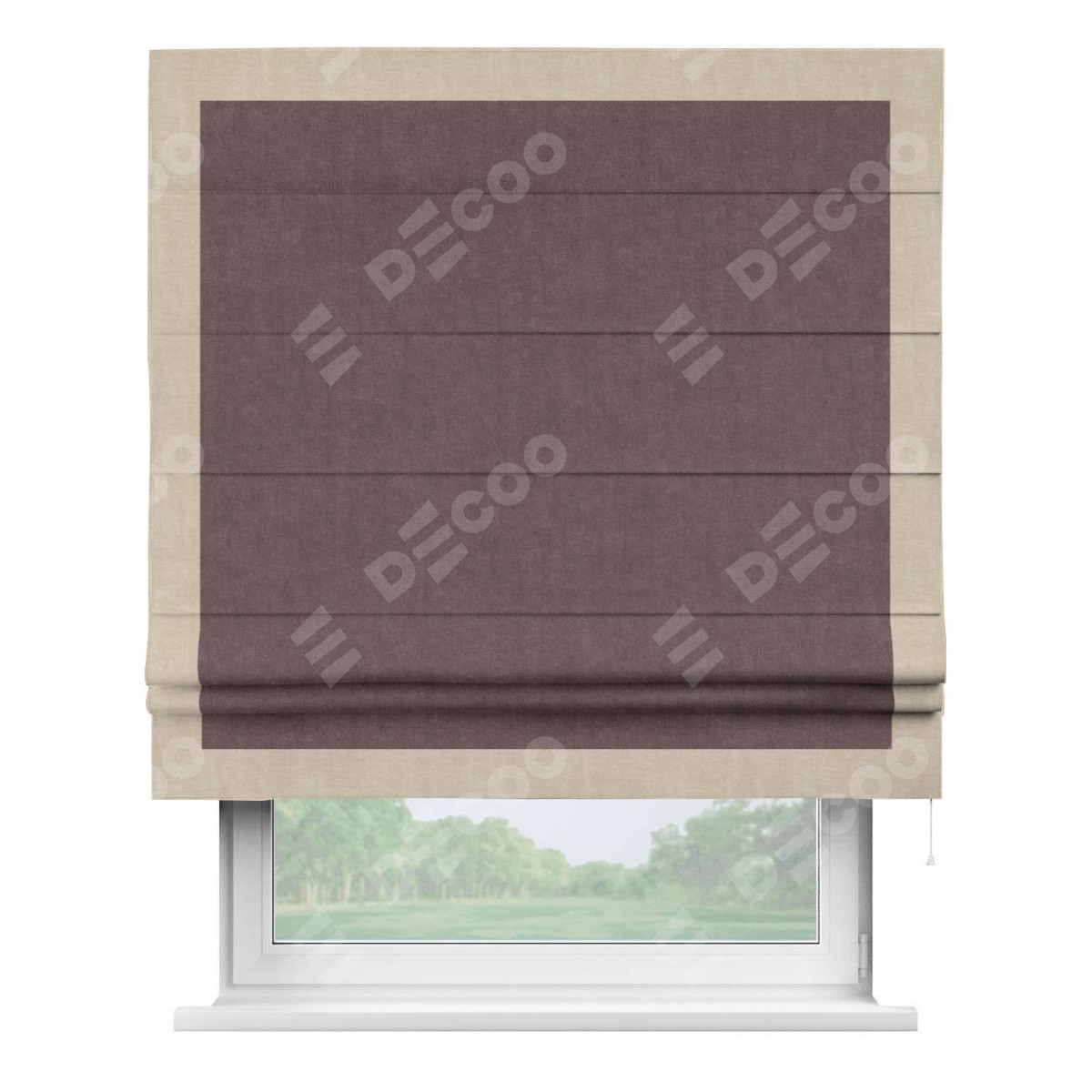Римская штора «Кортин» для проема, канвас махагон, с кантом Чесс