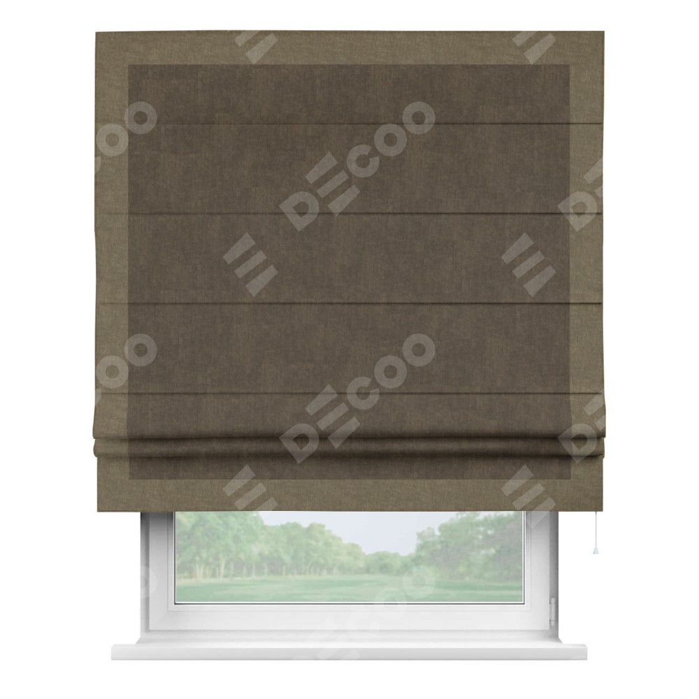 Римская штора «Кортин» для проема, канвас шоколадный, с кантом Чесс