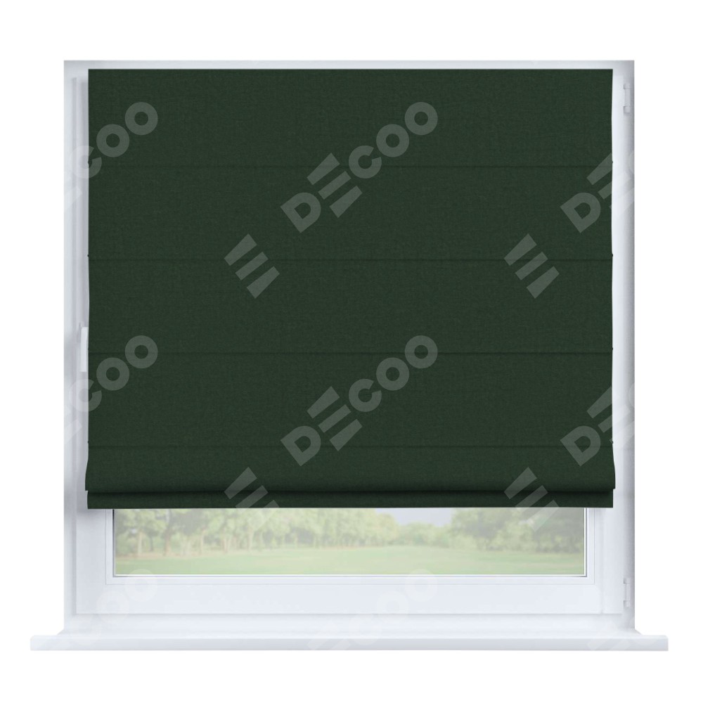 Римская штора производителя «Cortin», устанавливается на створку окна, пошита из ткани канвас глубокий зелёный, артикул v-588. Штора шьётся по индивидуальным размерам, для данного типа римской шторы возможная ширина от 35 до 150 см., высота до 250 см.
