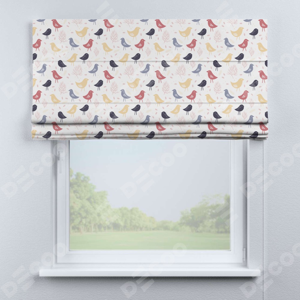 Римская штора «Кортин» для проема «Цветные птички»