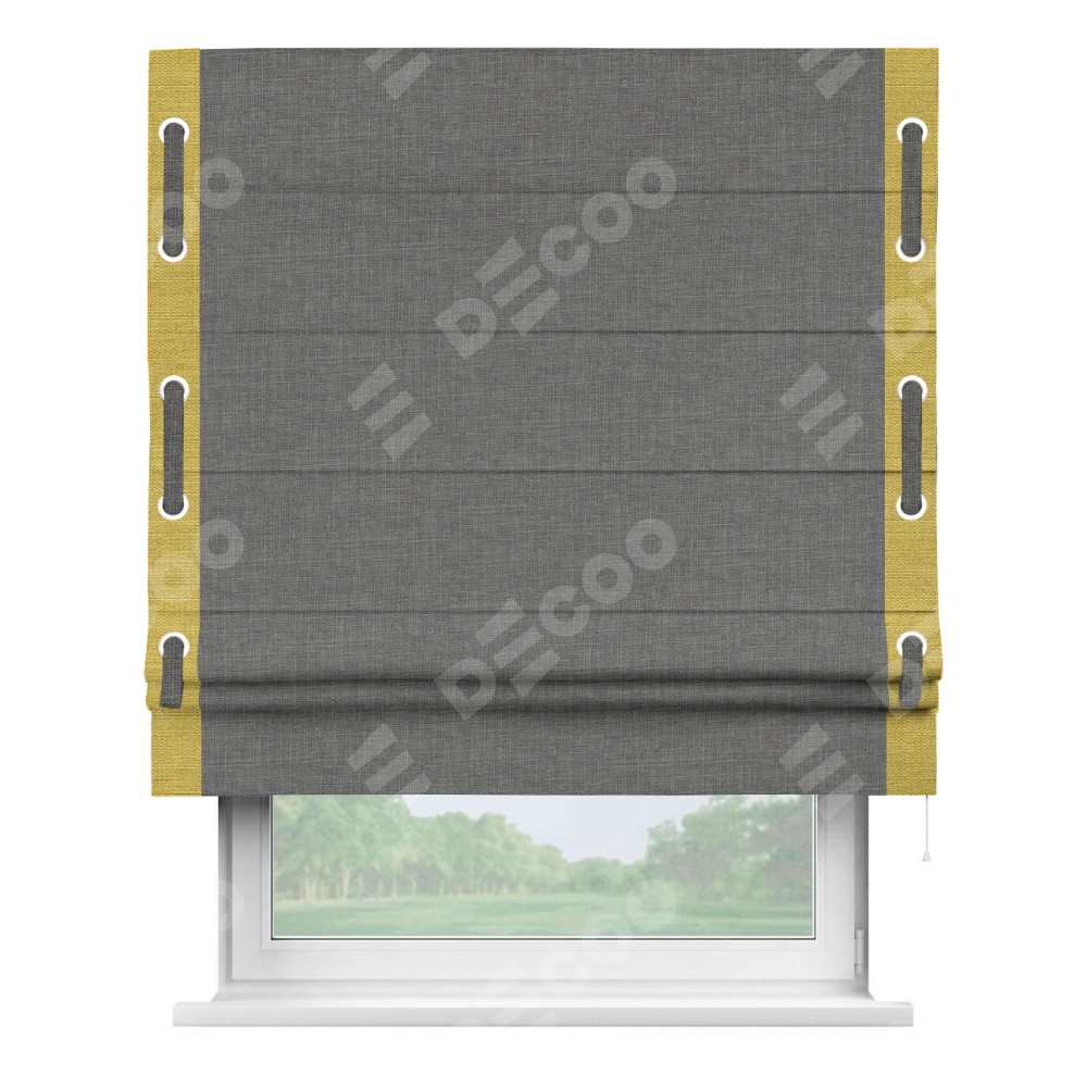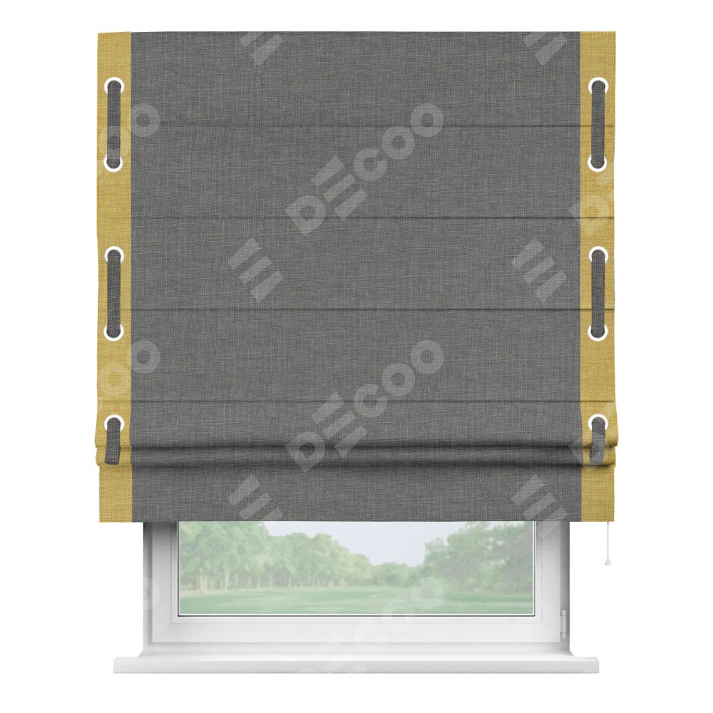 Римская штора «Кортин» с кантом Стрим Дуо (люверсы с пояском), для проема, лён тёмно-серый