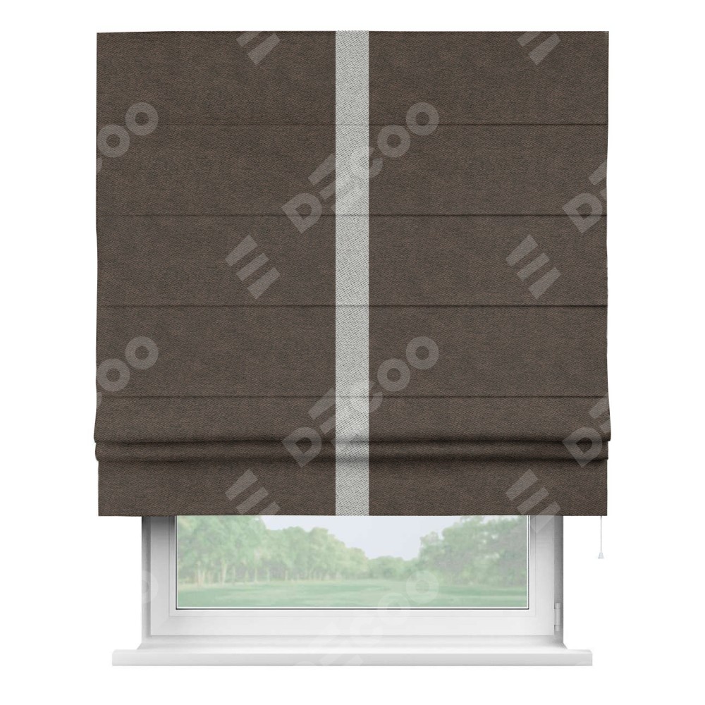 Римская штора «Кортин» для проема, твид блэкаут тёмно-коричневый, с кантом Хайвэй