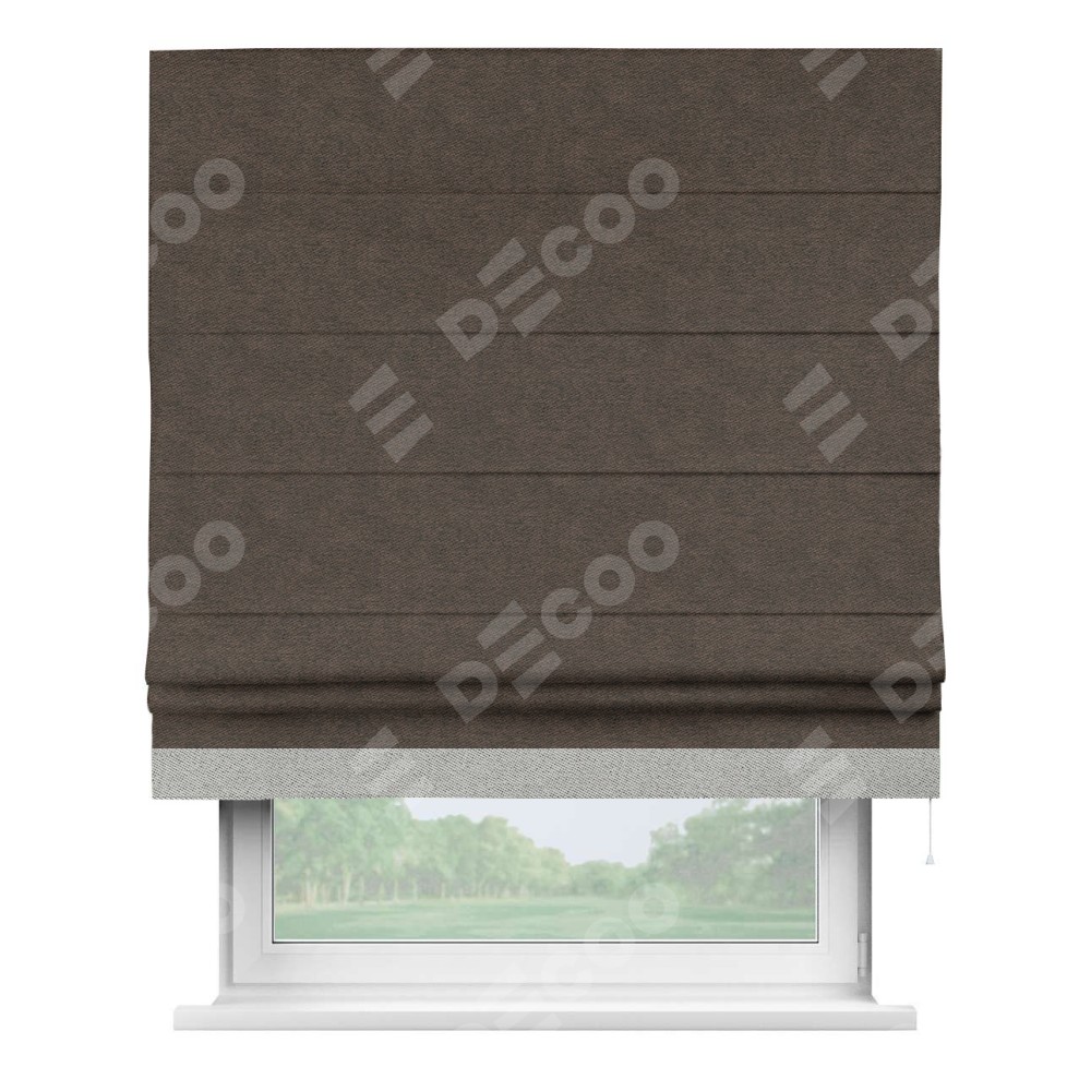 Римская штора «Кортин» для проема, твид блэкаут тёмно-коричневый, с кантом Джестер