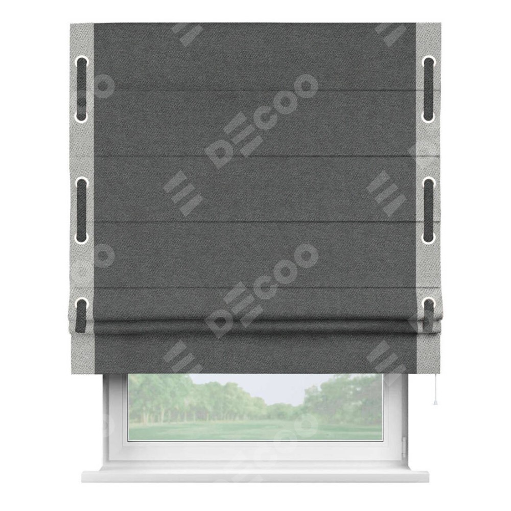 Римская штора «Кортин» для проема, твид блэкаут тёмно-серый, с кантом Стрим Дуо (люверсы с пояском)