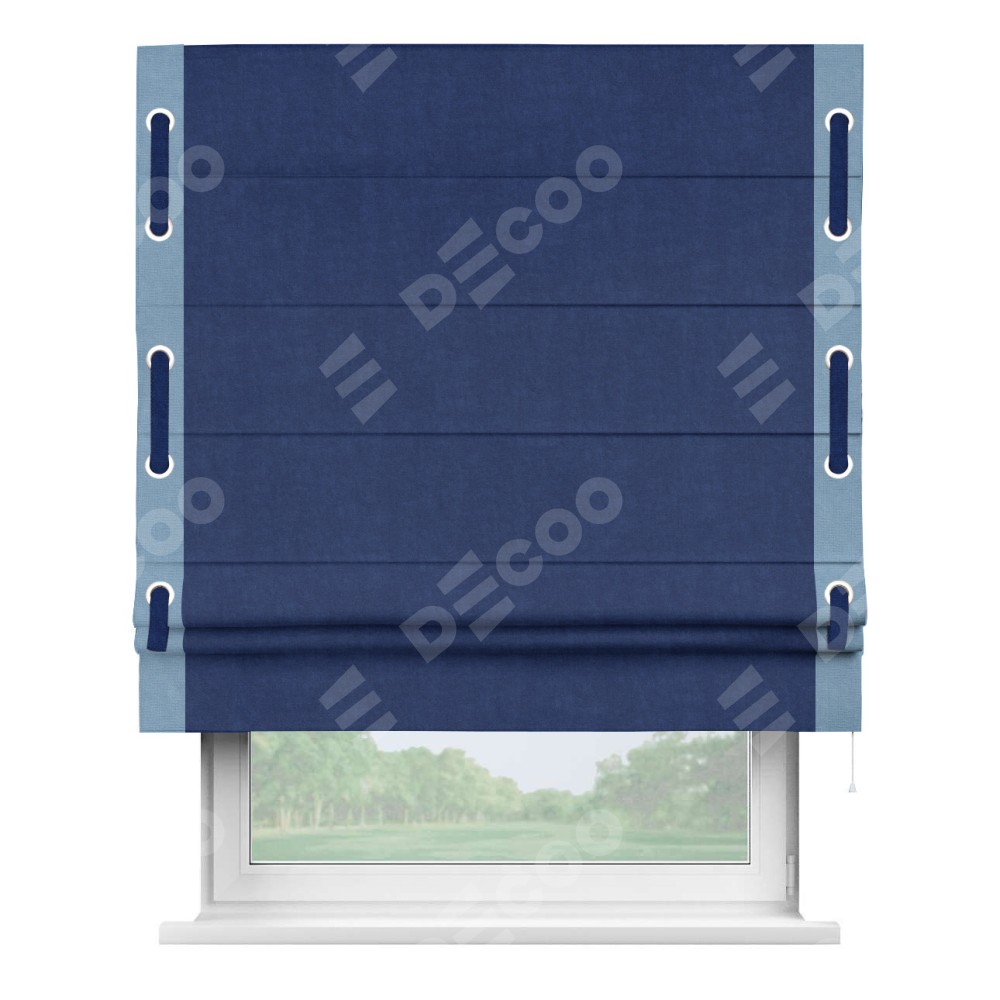 Римская штора «Кортин» для проема, канвас синий электрик, с кантом Стрим Дуо (люверсы с пояском)