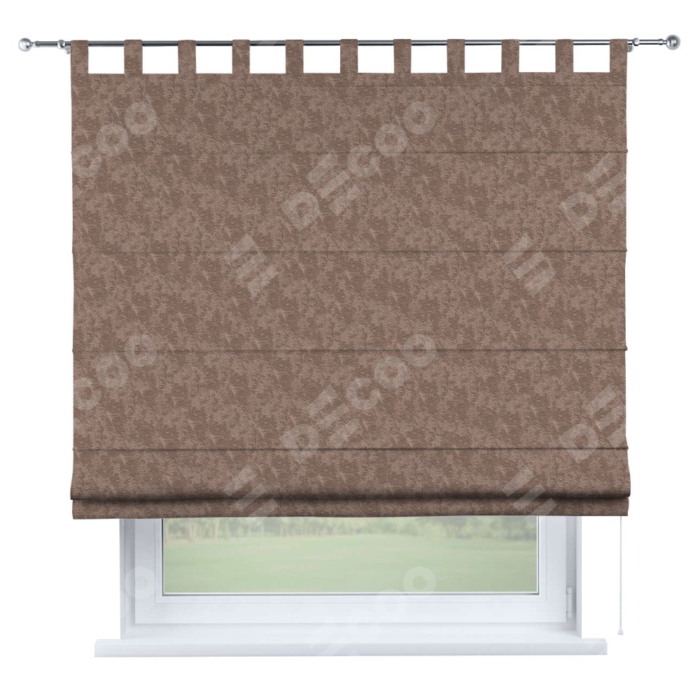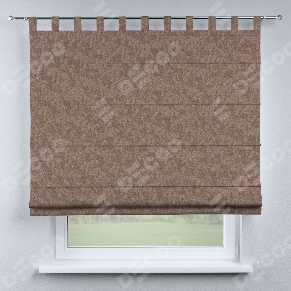 Римская штора производителя «Cortin», используется для проёма, пошита из ткани софт мрамор капучино, артикул ткани 93577. Данная модель пошита на петлях, комплектуется на выбор круглым карнизом и подходит для монтажа на стену. Римская штора на петлях имеет простую систему регулировки высоты, отличительным преимуществом данной модели является простой способ монтажа. Достаточно повесить ее на трубу и штора готова!