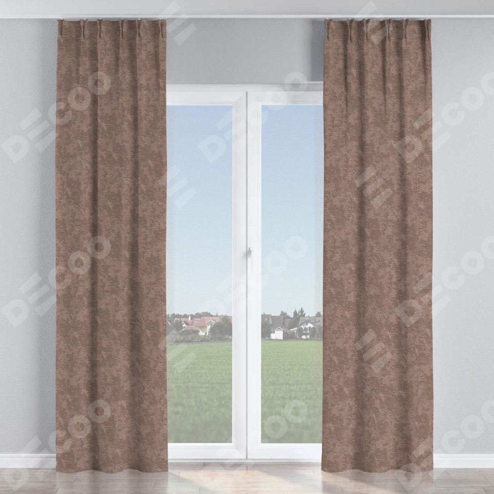 Комплект прямых штор, от производителя «Cortin», пошиты из ткани софт мрамор капучино, артикул ткани 93577. С изнаночной стороны в верхней части штор пристрачивается шторная лента с декоративными складками «Кустик». Для создания элегантных складок прямые шторы шьются по стандарту с коэффициентом 1:2 (на 100 см. ширины проёма 200 см. ширины ткани).