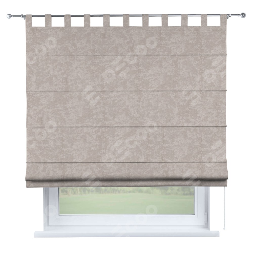 Римская штора производителя «Cortin», используется для проёма, пошита из ткани софт мрамор пудровый, артикул ткани 93578. Данная модель пошита на петлях, комплектуется на выбор круглым карнизом и подходит для монтажа на стену. Римская штора на петлях имеет простую систему регулировки высоты, отличительным преимуществом данной модели является простой способ монтажа. Достаточно повесить ее на трубу и штора готова!