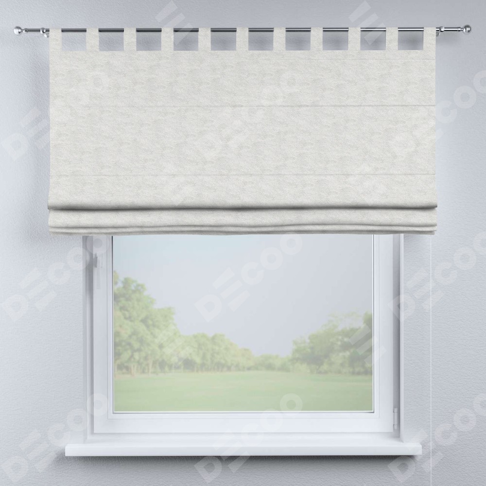 Римская штора производителя «Cortin», используется для проёма, пошита из ткани софт мрамор белый, артикул ткани 93581. Данная модель пошита на петлях, комплектуется на выбор круглым карнизом и подходит для монтажа на стену. Римская штора на петлях имеет простую систему регулировки высоты, отличительным преимуществом данной модели является простой способ монтажа. Достаточно повесить ее на трубу и штора готова!
