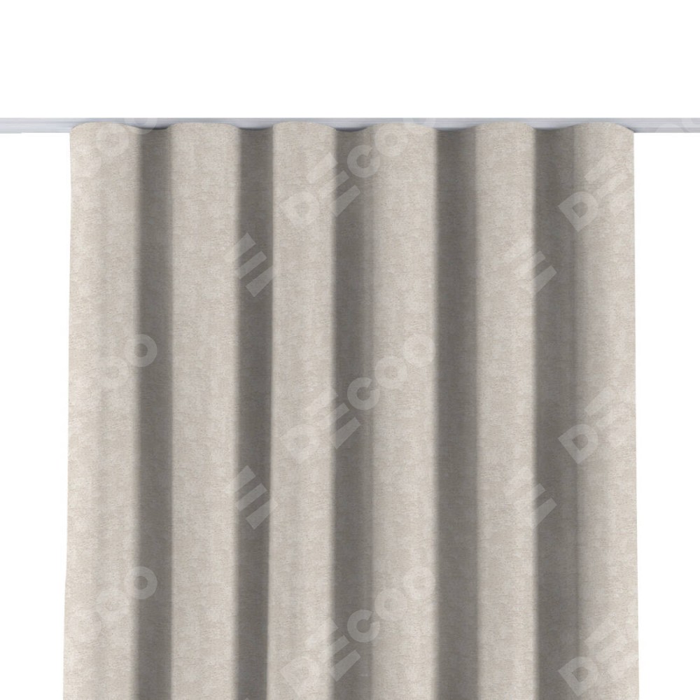 Комплект прямых штор, от производителя «Cortin», пошиты из ткани софт мрамор кремовый, артикул ткани 93574. С изнаночной стороны в верхней части штор пристрачивается шторная лента с декоративными складками «Волна». Для создания элегантных складок прямые шторы шьются по стандарту с коэффициентом 1:2 (на 100 см. ширины проёма 200 см. ширины ткани).