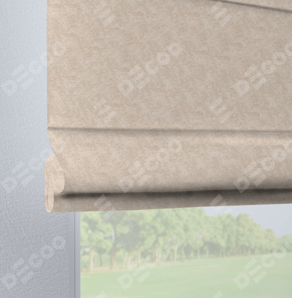 Римская штора производителя «Cortin», используется для проёма, пошита из ткани софт мрамор шампань, артикул ткани 93575. Данная модель пошита на петлях, комплектуется на выбор круглым карнизом и подходит для монтажа на стену. Римская штора на петлях имеет простую систему регулировки высоты, отличительным преимуществом данной модели является простой способ монтажа. Достаточно повесить ее на трубу и штора готова!