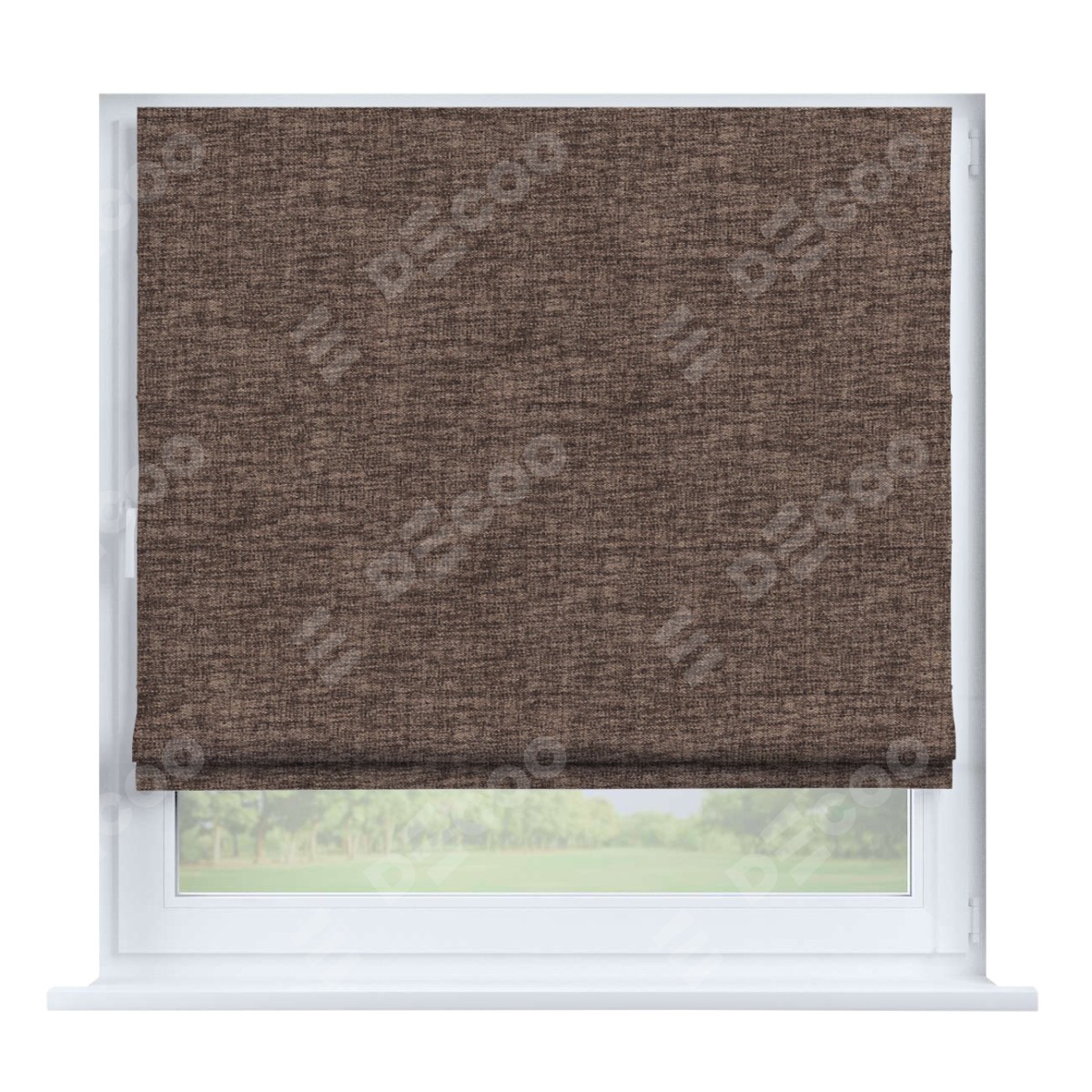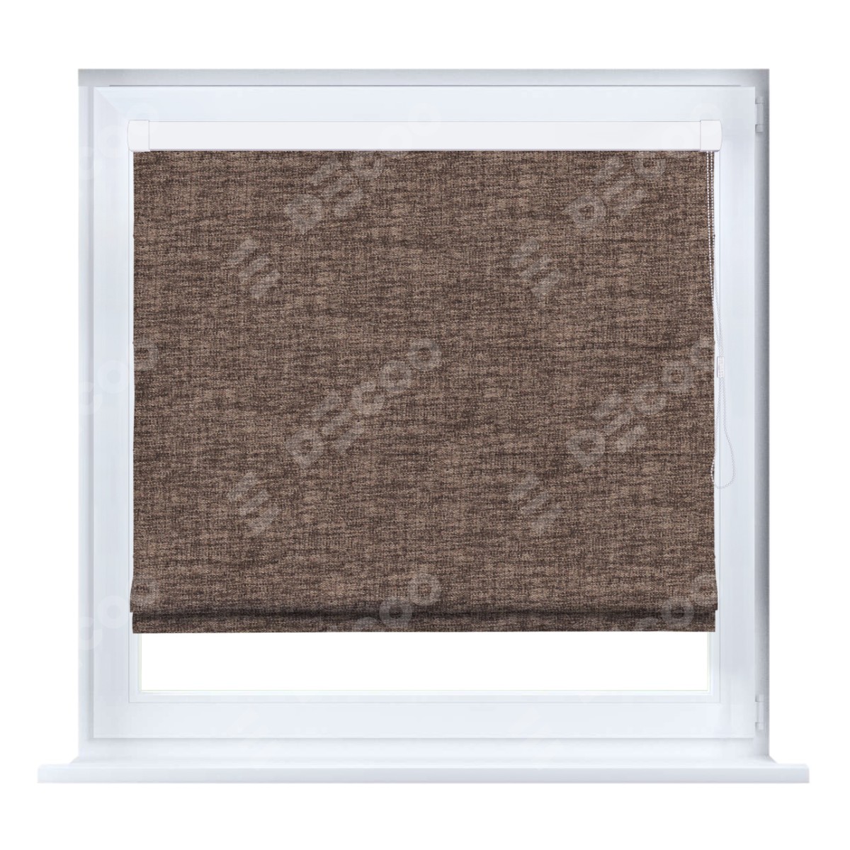 Римская штора производителя «Cortin», устанавливается на створку окна, пошита из ткани рогожка димаут коричневый, артикул 91018. Штора шьётся по индивидуальным размерам, для данного типа римской шторы возможная ширина от 35 до 150 см., высота до 250 см.