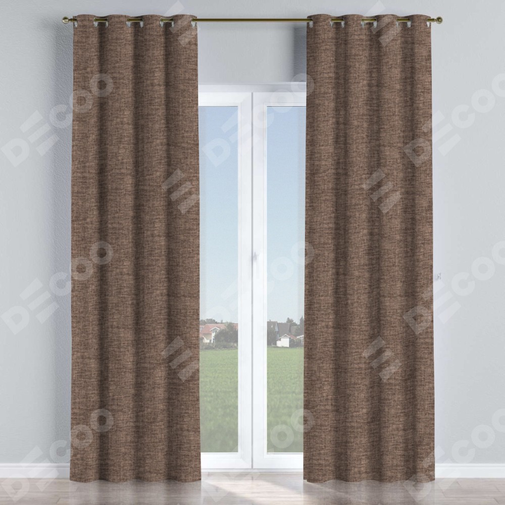 Комплект прямых штор, от производителя «Cortin», пошиты из ткани рогожка димаут коричневый, артикул ткани 91018. Данная модель пошита на люверсах, комплектуется на выбор круглым карнизом и подходит для монтажа на стену или потолок. Прямые шторы на люверсах шьются по стандарту с коэффициентом 1/2 (на 100 см. ширины проёма 200 см. ширины ткани), отличительным преимуществом данной модели является простой способ монтажа. Достаточно повесить ее на трубу и штора готова!