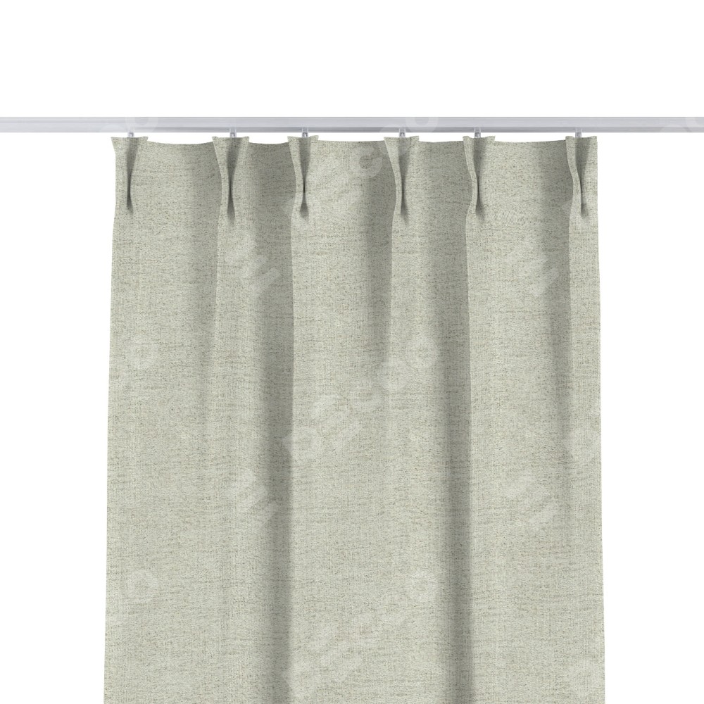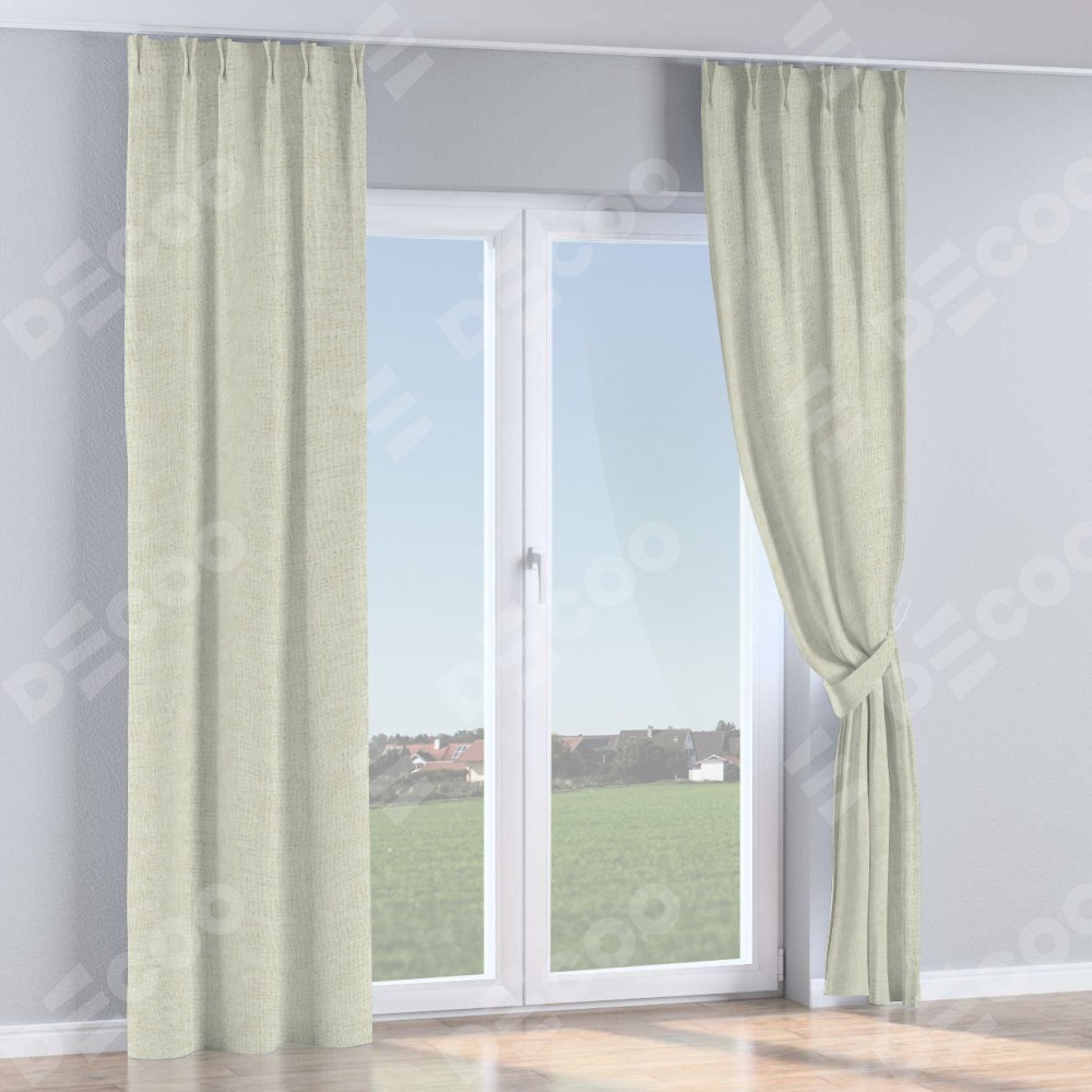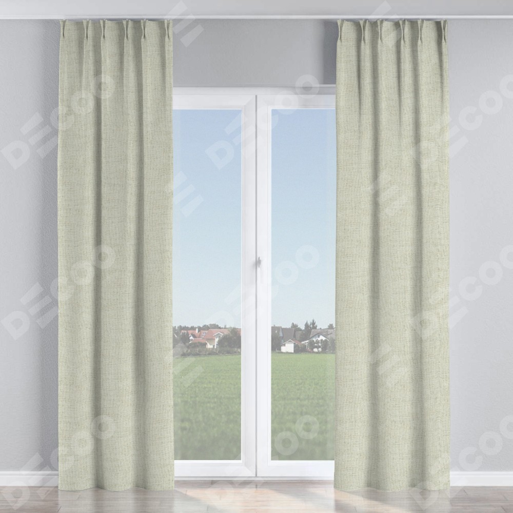 Комплект прямых штор, от производителя «Cortin», пошиты из ткани рогожка димаут серо-бежевый, артикул ткани 91014. С изнаночной стороны в верхней части штор пристрачивается шторная лента с декоративными складками «Кустик». Для создания элегантных складок прямые шторы шьются по стандарту с коэффициентом 1:2 (на 100 см. ширины проёма 200 см. ширины ткани).