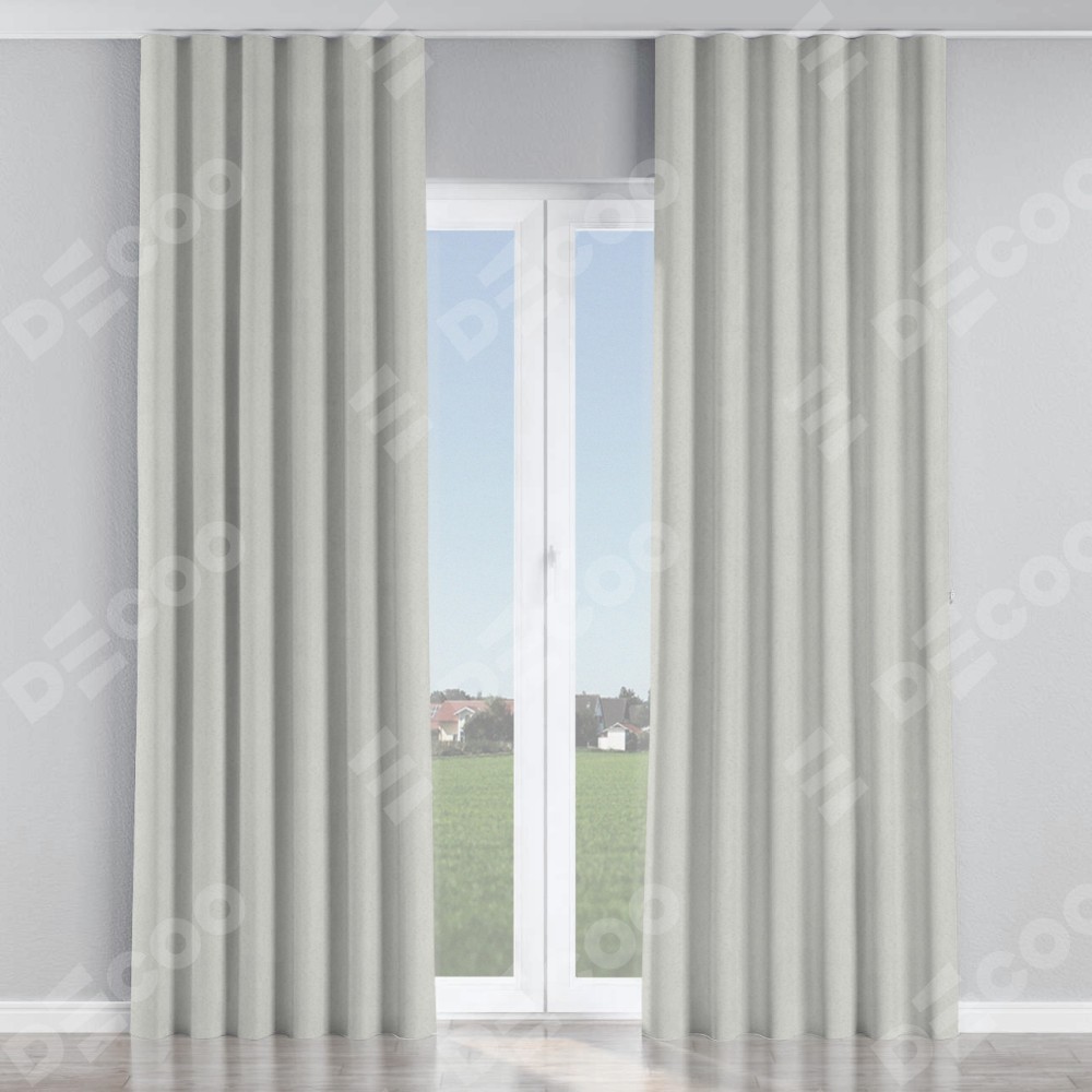 Комплект прямых штор, от производителя «Cortin», пошиты из ткани блэкаут однотонный милк, артикул ткани 23. С изнаночной стороны в верхней части штор пристрачивается шторная лента с декоративными складками «Волна». Для создания элегантных складок прямые шторы шьются по стандарту с коэффициентом 1:2 (на 100 см. ширины проёма 200 см. ширины ткани).