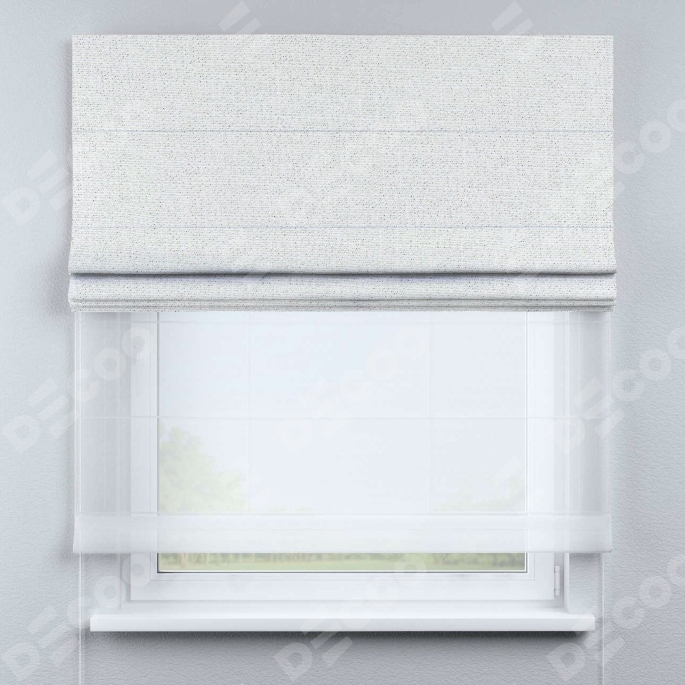 Двойная римская штора «День-ночь» от производителя Cortin предназначена для использования в проёмах. Эта штора уникальна тем, что состоит из двух полотен. На лицевой стороне находится лён шампань (артикул: 91399), обеспечивающий эффективное затемнение. В комплект также входит вторая ткань — легкий белый тюль (артикул: V-01), который добавляет изящества и легкости оформлению окна. Кроме того, доступны и другие разновидности ткани тюль, выбор которых доступен по  ссылке .