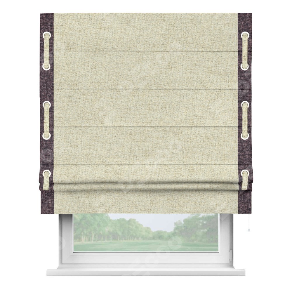 Римская штора «Кортин» для проёма, рогожка димаут золотой песок, с кантом Стрим Дуо (люверсы с пояском)