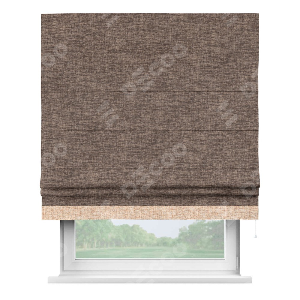 Римская штора «Кортин» для проёма, рогожка димаут коричневый, с кантом Джестер