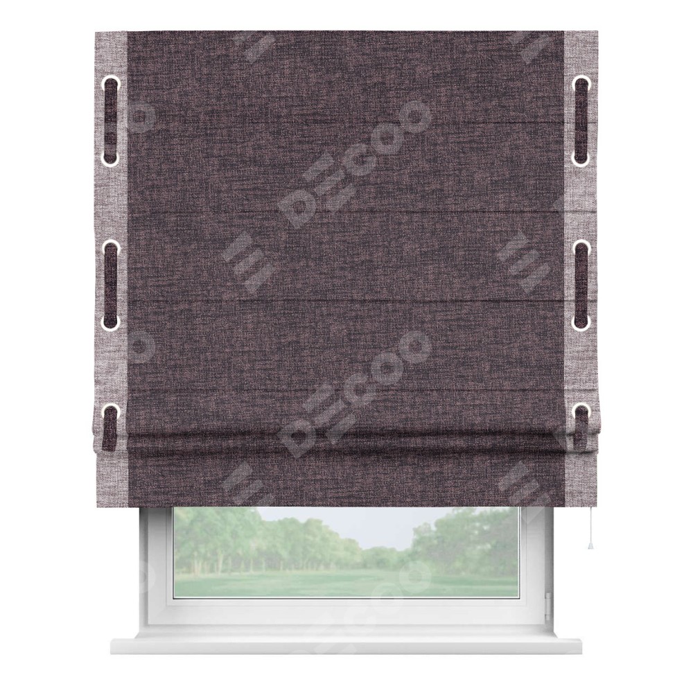 Римская штора «Кортин» для проёма, рогожка димаут розово-коричневый, с кантом Стрим Дуо (люверсы с пояском)
