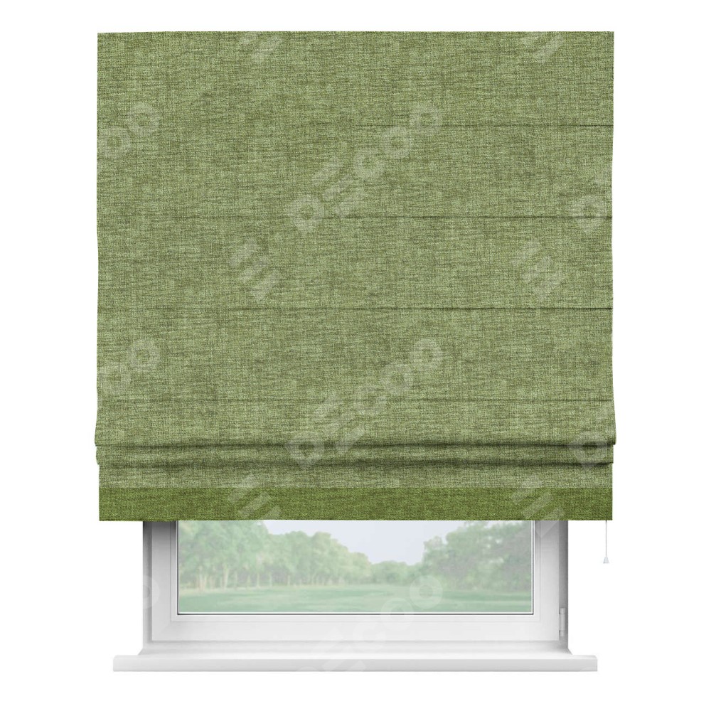 Римская штора «Кортин» для проёма, рогожка димаут травяной, с кантом Джестер