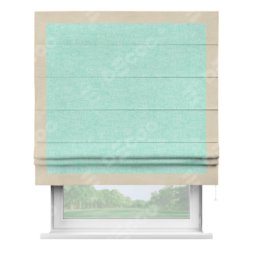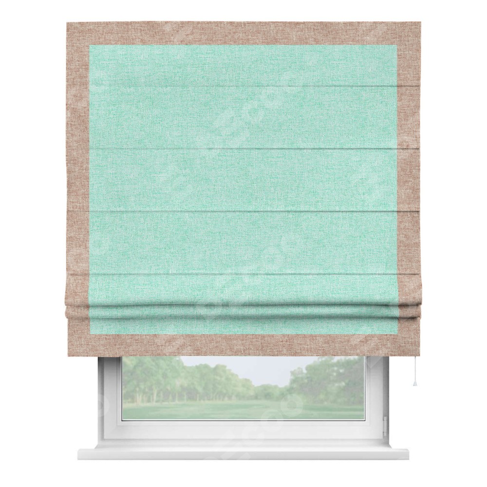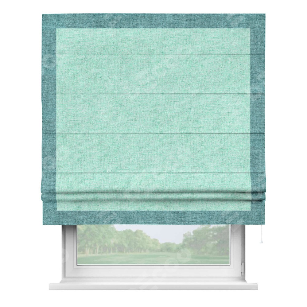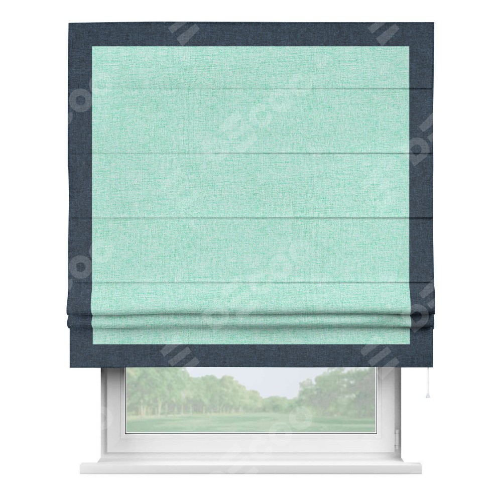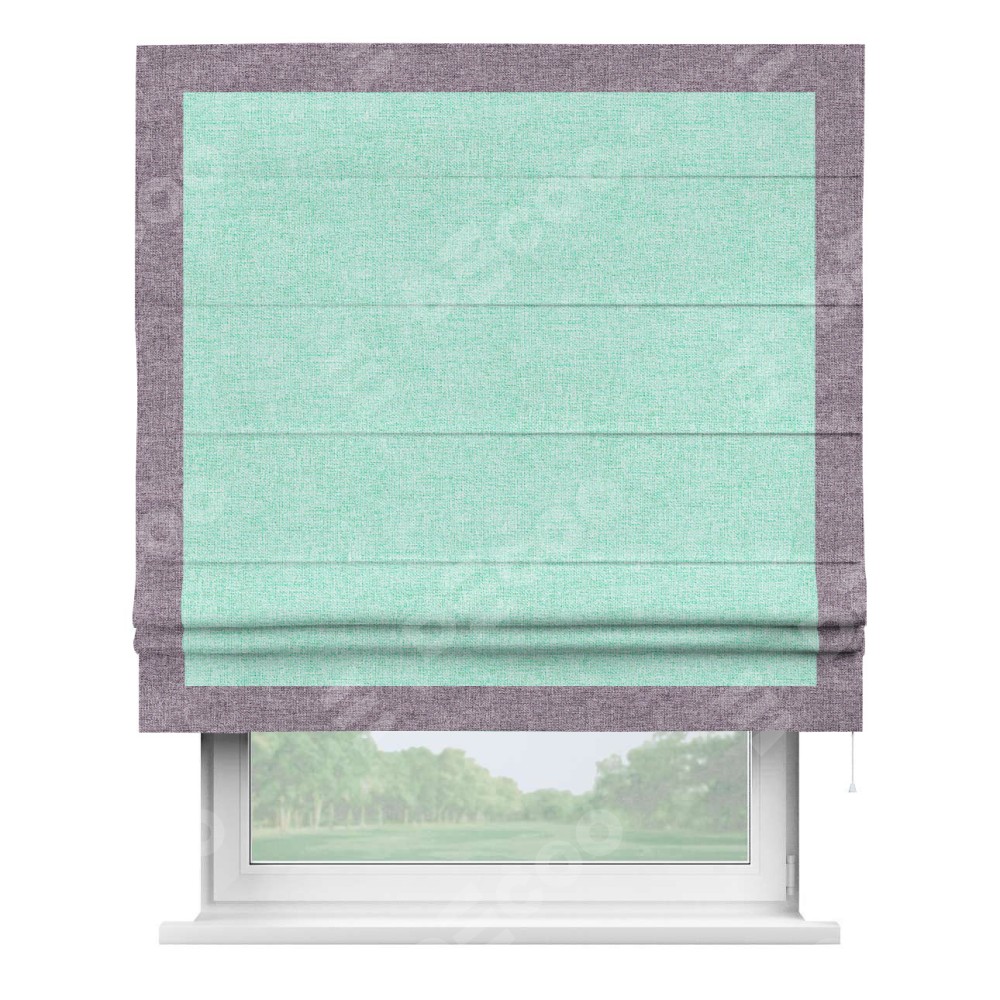 Римская штора пошита из ткани лён кашемир мятный, артикул: 21617, с отделкой кантом «Чесс» отличается своей уникальной деталью — наличием канта не только по бокам и снизу, но и сверху по всем краям шторы. Это придает шторе особенно аккуратный и завершенный вид, делая акцент на границах и форме шторы. Отделка кантом по всему периметру шторы усиливает её декоративные качества и подчеркивает строгую геометрию, что может быть особенно актуально для современных и минималистичных интерьеров.