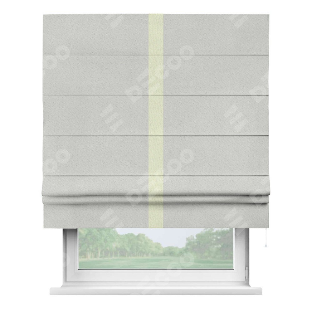Римская штора пошита из ткани однотонный блэкаут милк, артикул: 23, с отделкой кантом «Хайвэй» представляет собой уникальное и смелое дизайнерское решение, где кант расположен вертикально посередине шторы. Этот дизайн не только выделяет штору среди других вариантов оформления окон, но и создает интересный визуальный акцент, привлекая внимание к центру окна и разделяя штору на визуальные зоны. Такой нестандартный подход добавляет динамичности интерьеру и может быть использован для подчеркивания особенностей оформления помещения.