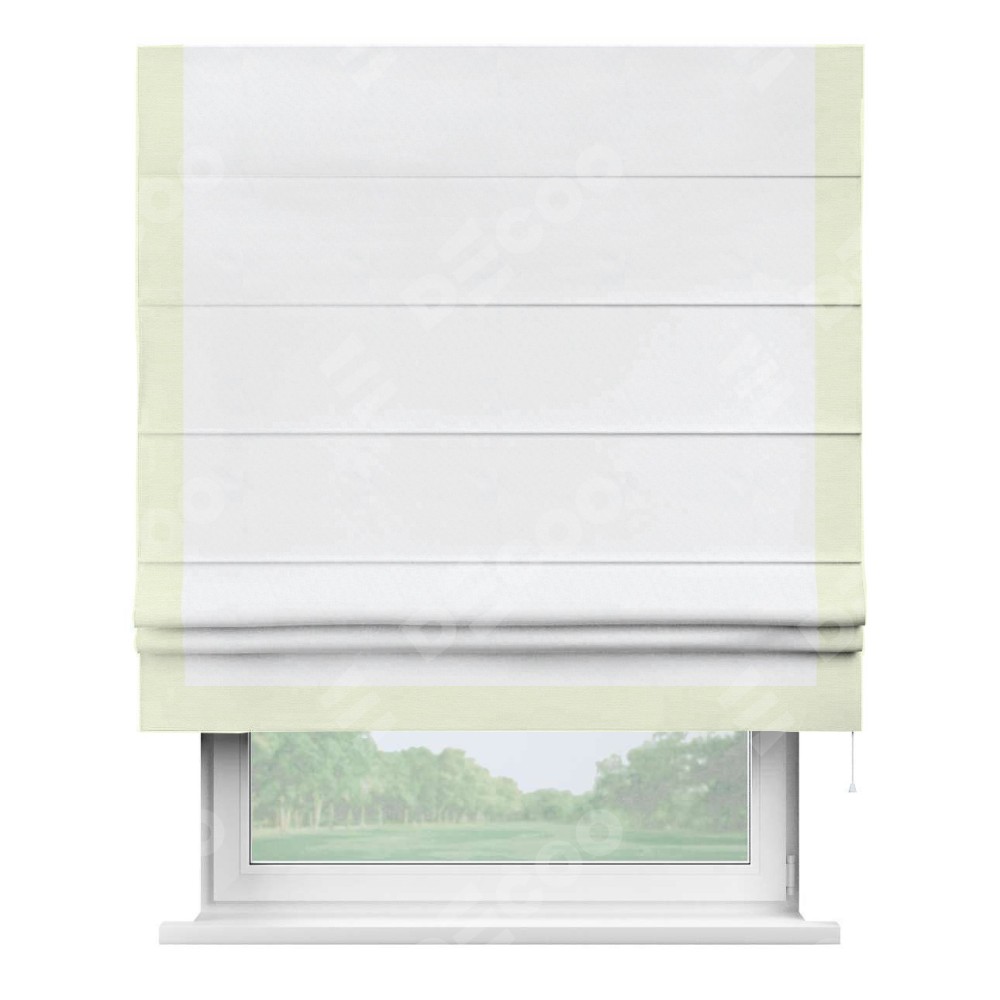 Римская штора с отделкой кантом «Виктория», пошита из ткани вельвет белоснежный, артикул: 92698. представляет собой элегантное решение для оконного оформления. Кант по бокам и снизу шторы добавляет изысканности и аккуратности внешнему виду, подчеркивая линии и форму шторы. Этот элемент декора не только украшает, но и выполняет практическую функцию, защищая края ткани от износа. Кант может быть выполнен в контрастном или гармонирующем цвете, что позволяет добиться различных стилевых эффектов и легко вписать штору в интерьер комнаты.