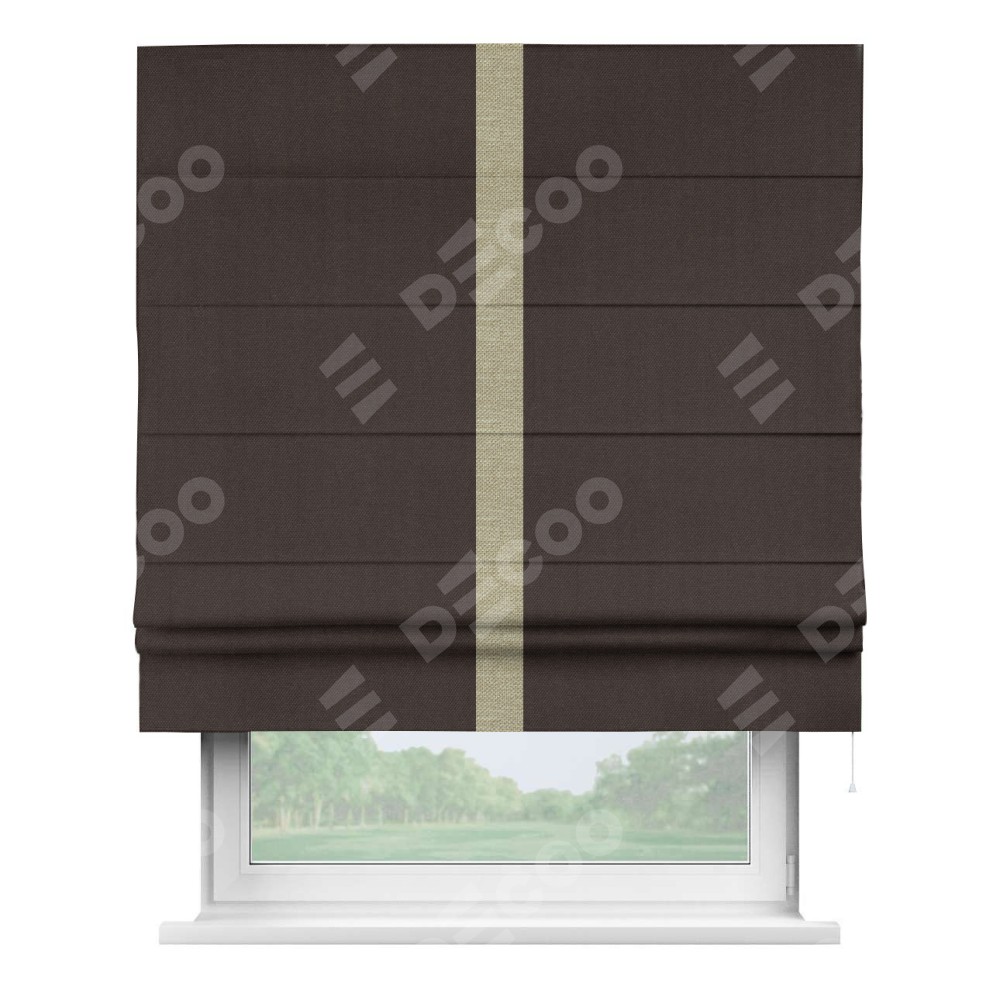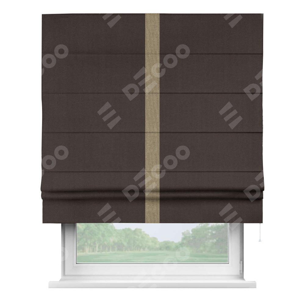 Римская штора «Кортин» для проема, лён димаут венге с кантом Хайвэй