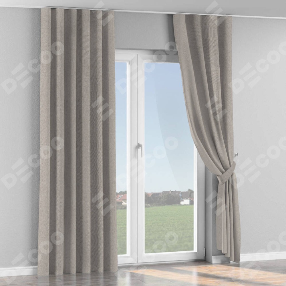 Комплект прямых штор, от производителя «Cortin», пошиты из ткани лён димаут серо-бежевый, артикул ткани 17. С изнаночной стороны в верхней части штор пристрачивается шторная лента с декоративными складками «Волна». Для создания элегантных складок рекомендуемый коэффициент 1:2 (на 100 см. ширины проёма 200 см. ширины ткани). Важно! Ширина штор указана без учёта коэффициента сборки!