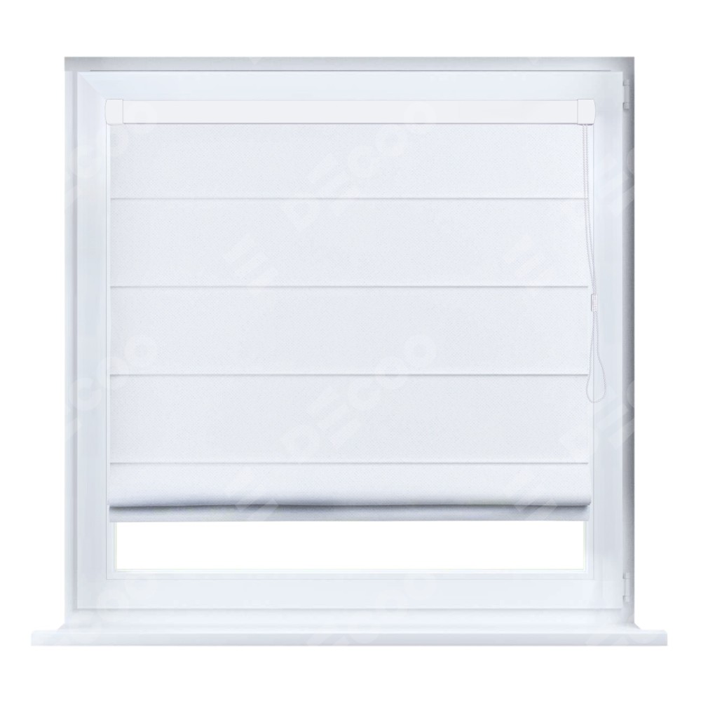 Римская штора производителя «Cortin», устанавливается на створку окна, пошита из ткани лён димаут белый, артикул 28. Штора шьётся по индивидуальным размерам, для данного типа римской шторы возможная ширина от 35 до 150 см., высота до 250 см.
