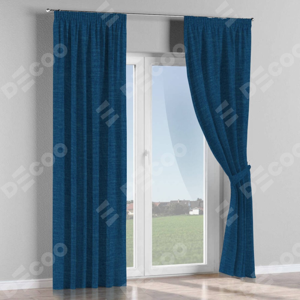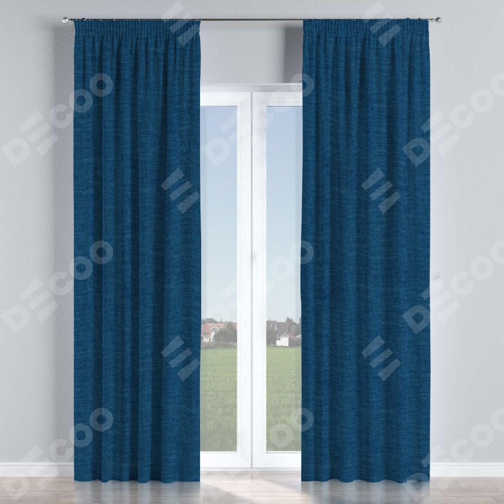 Комплект прямых штор, от производителя «Cortin», пошиты из ткани лён синий, артикул ткани 104496. С изнаночной стороны в верхней части штор пристрачивается шторная лента с декоративными складками «Карандаш». Для создания элегантных складок рекомендуемый коэффициент 1:2 (на 100 см. ширины проёма 200 см. ширины ткани). Важно! Ширина штор указана без учёта коэффициента сборки!