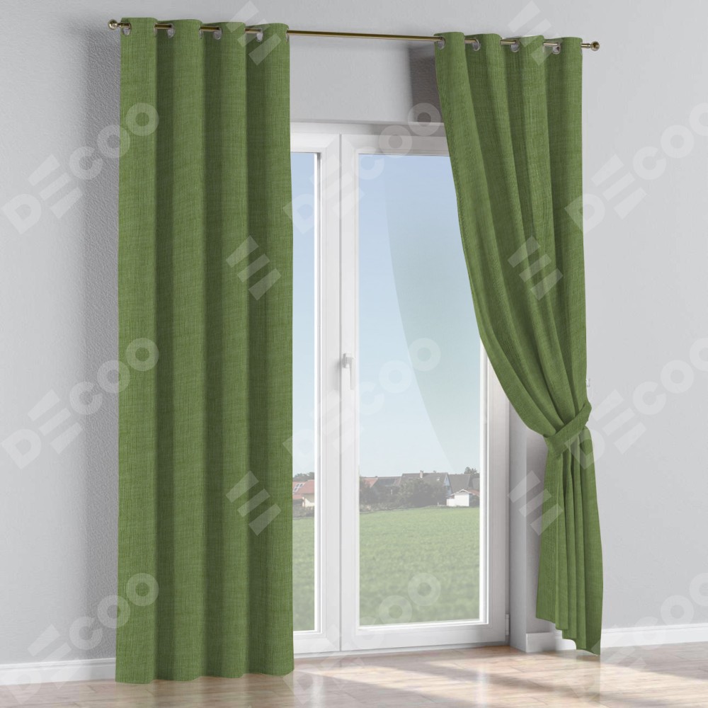 Комплект прямых штор, от производителя «Cortin», пошиты из ткани лён зелёный, артикул ткани 131547. Данная модель пошита на люверсах, комплектуется на выбор круглым карнизом и подходит для монтажа на стену или потолок. Для создания элегантных складок рекомендуемый коэффициент 1:2 (на 100 см. ширины проёма 200 см. ширины ткани). Важно! Ширина штор указана без учёта коэффициента сборки!