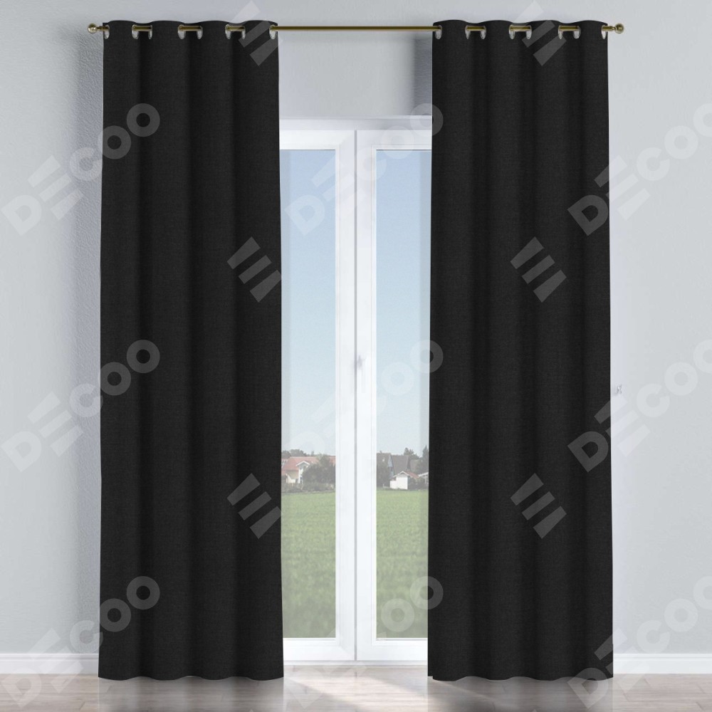 Комплект прямых штор, от производителя «Cortin», пошиты из ткани лён черный, артикул ткани 140815. Данная модель пошита на люверсах, комплектуется на выбор круглым карнизом и подходит для монтажа на стену или потолок. Для создания элегантных складок рекомендуемый коэффициент 1:2 (на 100 см. ширины проёма 200 см. ширины ткани). Важно! Ширина штор указана без учёта коэффициента сборки!