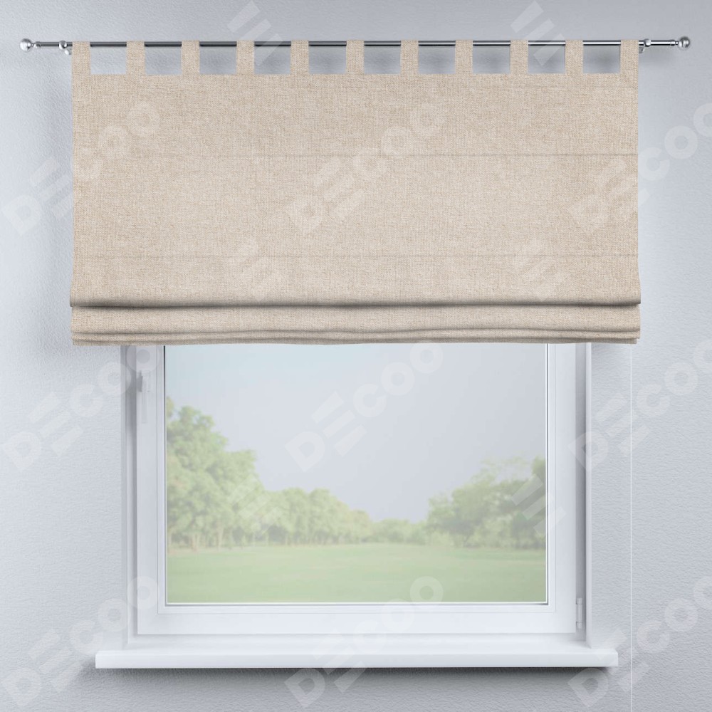 Римская штора производителя «Cortin», используется для проёма, пошита из ткани лён кашемир натуральный беж. Данная модель пошита на петлях, комплектуется на выбор круглым карнизом и подходит для монтажа на стену. Римская штора на петлях имеет простую систему регулировки высоты, отличительным преимуществом данной модели является простой способ монтажа. Достаточно повесить ее на трубу и штора готова!