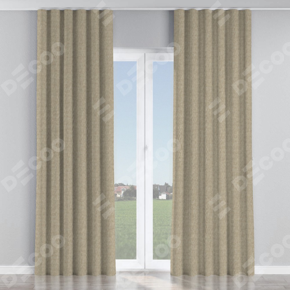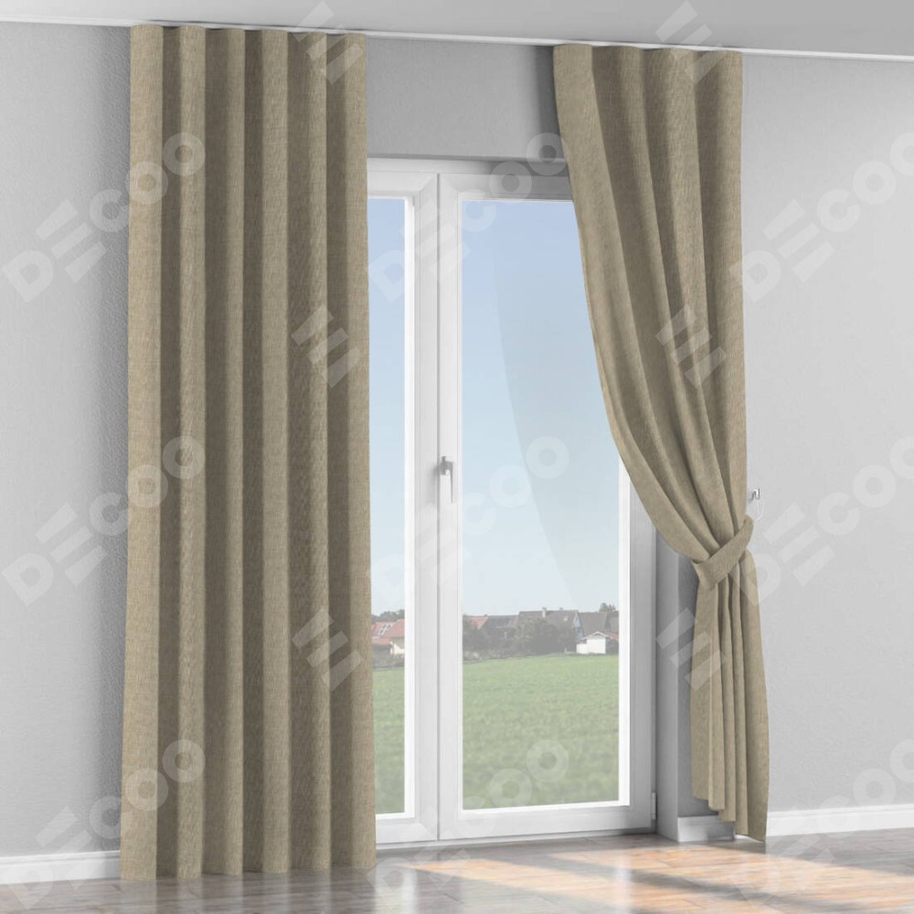 Комплект прямых штор, от производителя «Cortin», пошиты из ткани лён бежевый, артикул ткани 143839. С изнаночной стороны в верхней части штор пристрачивается шторная лента с декоративными складками «Волна». Для создания элегантных складок рекомендуемый коэффициент 1:2 (на 100 см. ширины проёма 200 см. ширины ткани). Важно! Ширина штор указана без учёта коэффициента сборки!