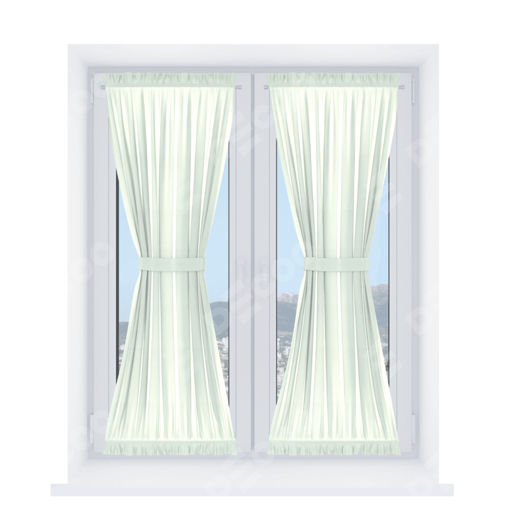 Штора «Песочные часы» производителя «Cortin», используется для створок окон и дверей, пошита из ткани вельвет кремовый, артикул ткани 85524.