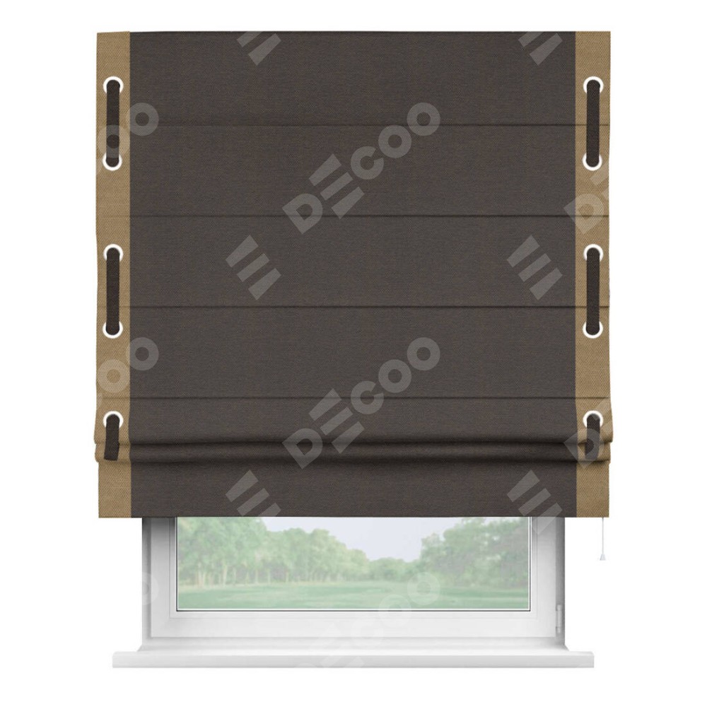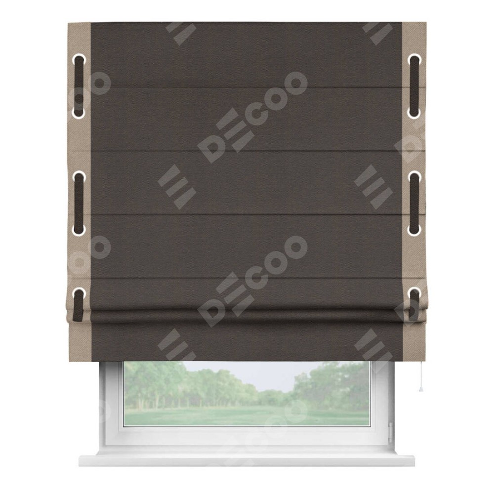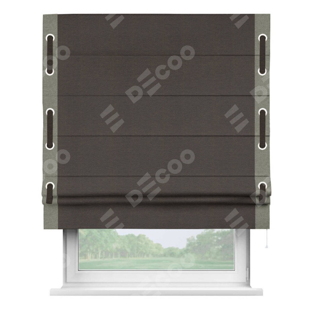 Римская штора «Кортин» с кантом Стрим Дуо (люверсы с пояском), для проема, ткань лён димаут, венге