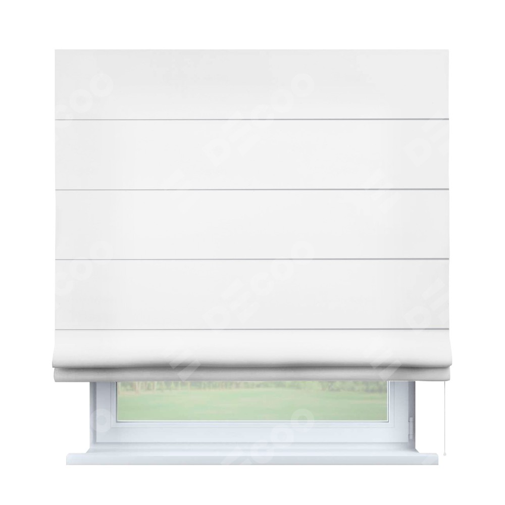 Классическая римская штора производителя «Cortin», пошита из ткани вайтаут однотонная белая, артикул: 93935. Имеет универсальный механизм и подходит для монтажа: на потолок, на стену и в нишу.