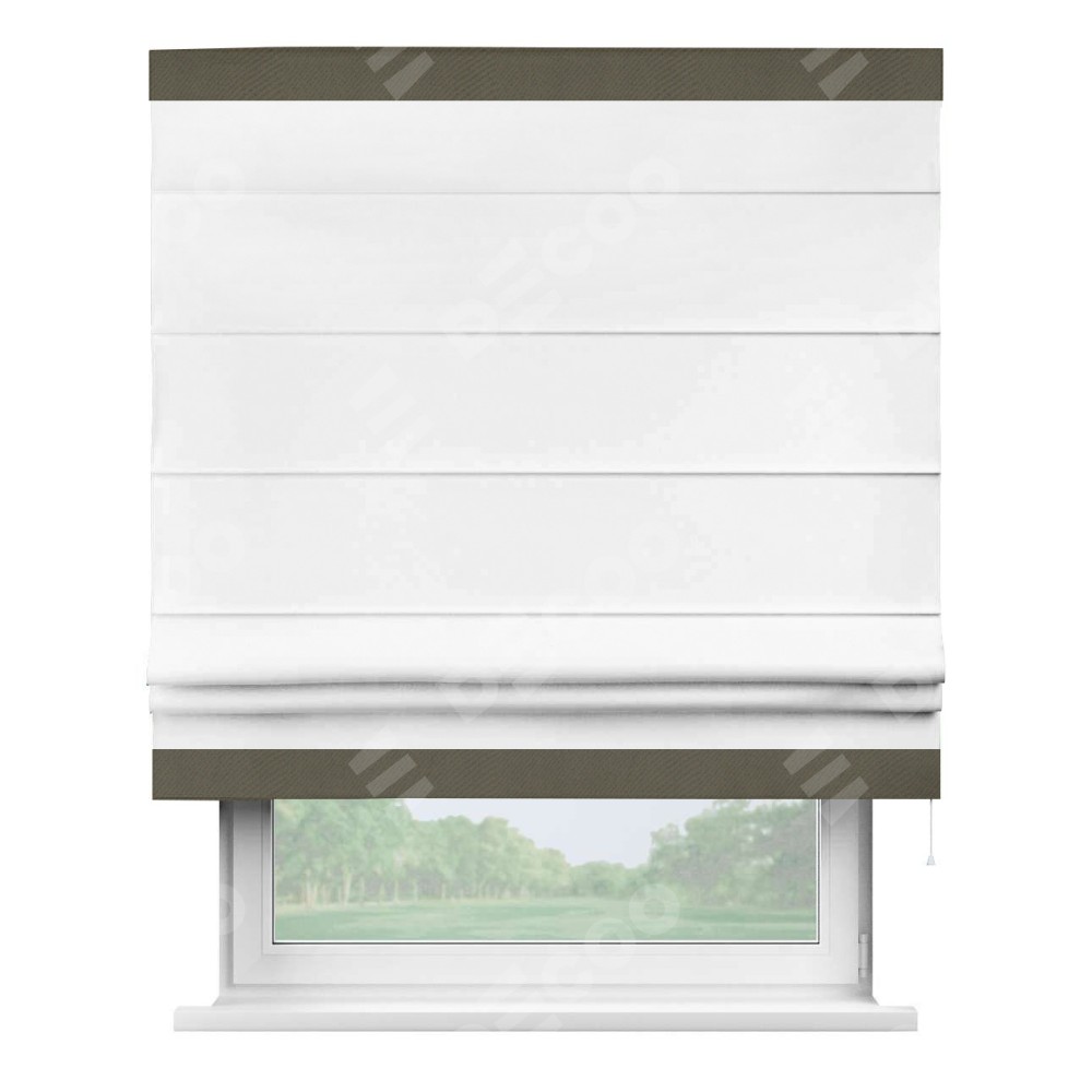 Римская штора «Кортин» для проёма, вайтаут однотонная белая с кантом Горизонт