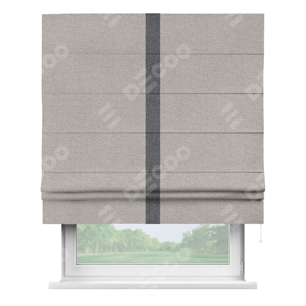 Римская штора «Кортин» для проема, лён димаут серо-бежевый с кантом Хайвэй