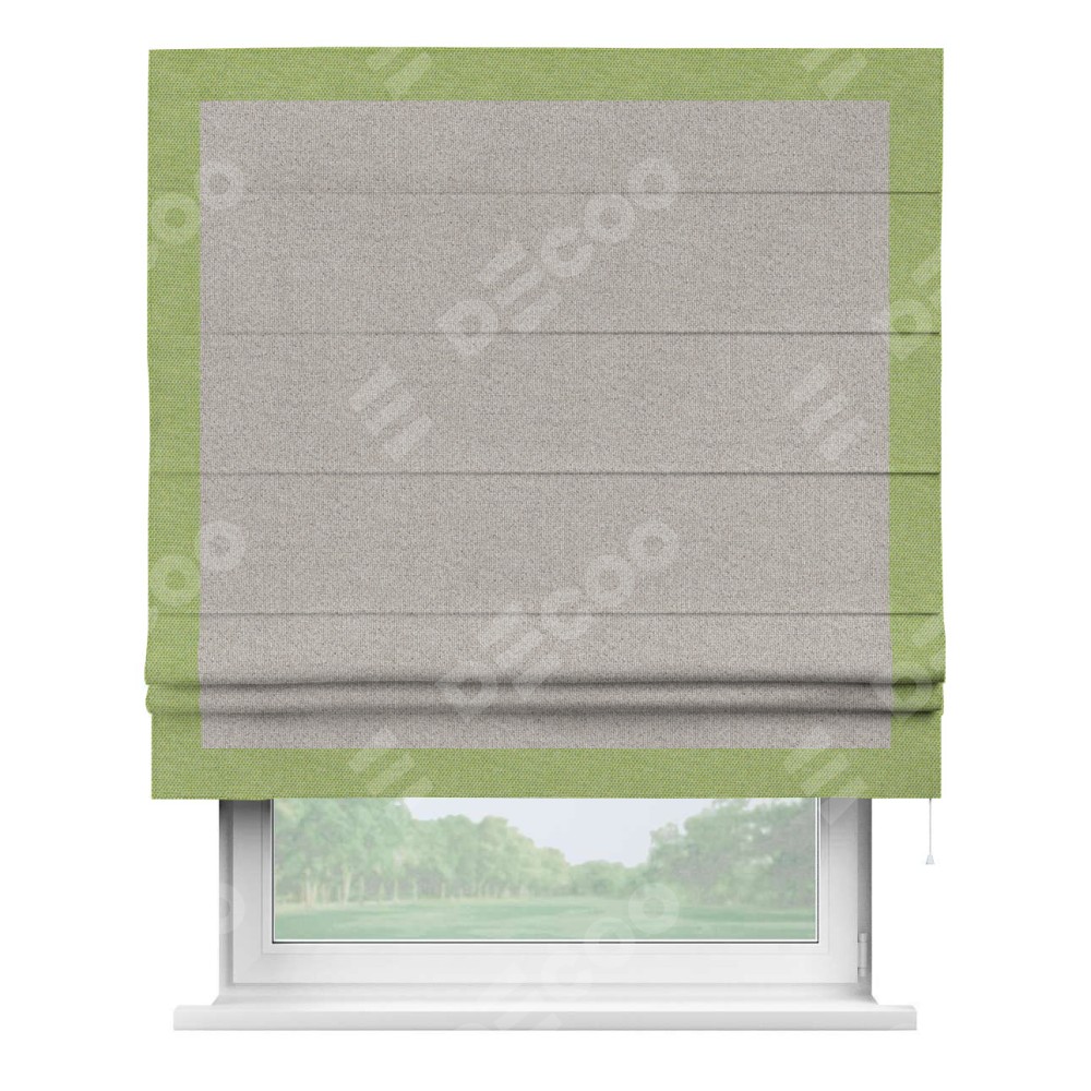 Римская штора «Кортин» для проема, лён димаут серо-бежевый с кантом Чесс