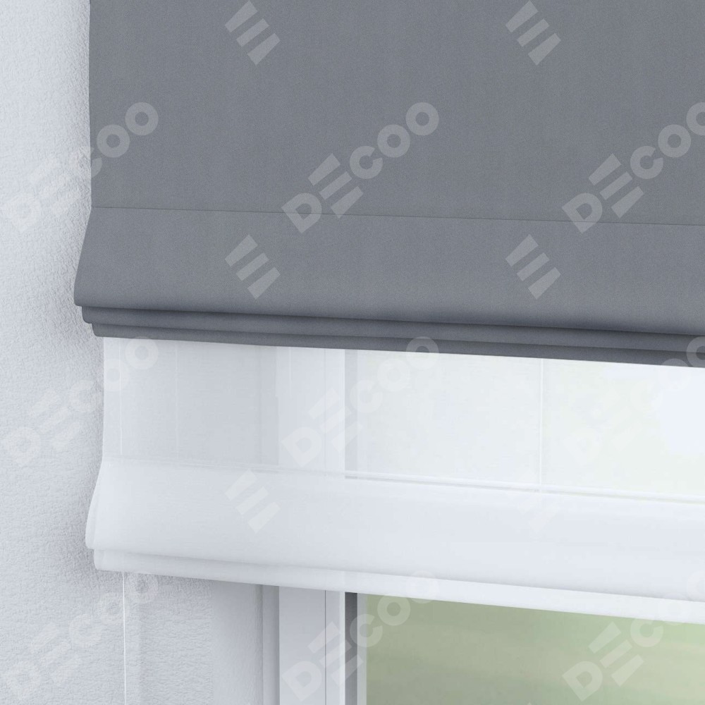 Двойная римская штора «День-ночь» от производителя Cortin предназначена для использования в проёмах. Эта штора уникальна тем, что состоит из двух полотен. На лицевой стороне находится однотонный блэкаут серый (артикул: 146436), обеспечивающий эффективное затемнение. В комплект также входит вторая ткань — легкий белый тюль (артикул: V-01), который добавляет изящества и легкости оформлению окна. Кроме того, доступны и другие разновидности ткани тюль, выбор которых доступен по ссылке .